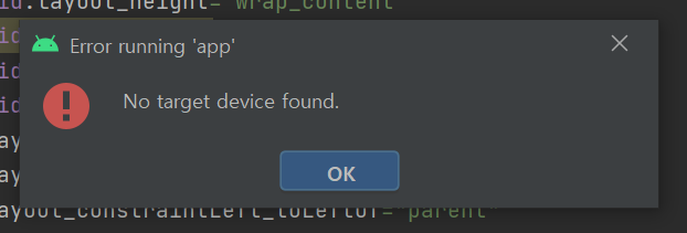 Run app할 때, No target device found 해결 방법 본문