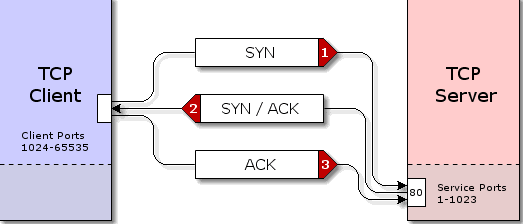 1. 클라이언트는 서버에 접속을 요청하는 SYN 패킷(Synchronize)을 보낸다.