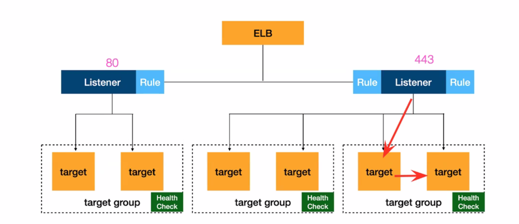로드밸런서는 무조건 타겟그룹으로 보낸다 리스너를 통해서 health check를 지속적으로 하고 있다. (target group안에있음)