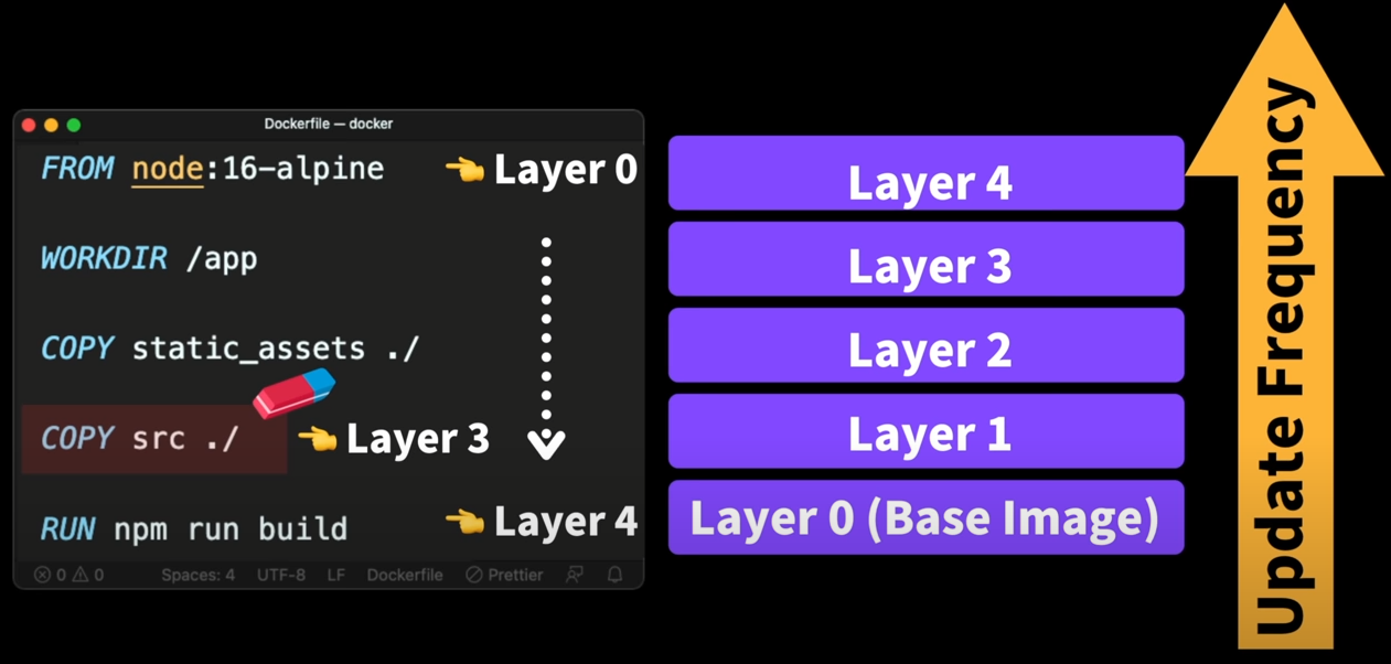 명령어 하나하나가 Layer로 되어 있기 때문에 가장 빈번히 사용되는 것을 나중에 적어야한다. 그래야 수정시 이미지 생성 시간도 단축할 수 있으며 효율도 높아진다.