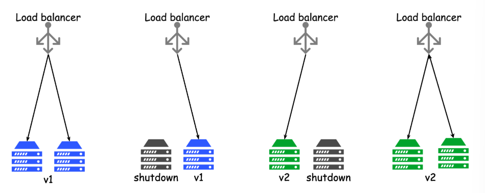 - blue는 이전 green 환경의 역할을 가져가서 green이 잘 동작하지 않을때 백업 서버 역할을 수행