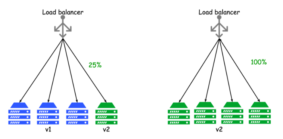 전체 인프라에 새로운 소프트웨어 버전을 릴리즈하여 모든 사용자가 사용할 수 있도록 하기 전에 변경 사항을 천천히 릴리즈하여 프로덕션 환경에 새 소프트웨어 버전을 도입하는 위험을 줄일 수 있다.