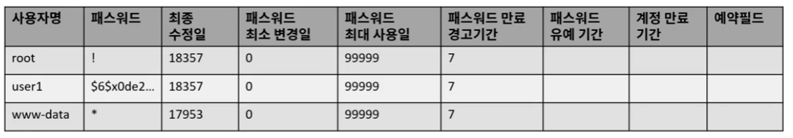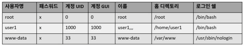 1000~ : user (사용자 계정은 1000번부터 시작)