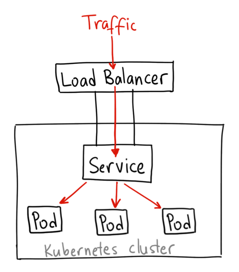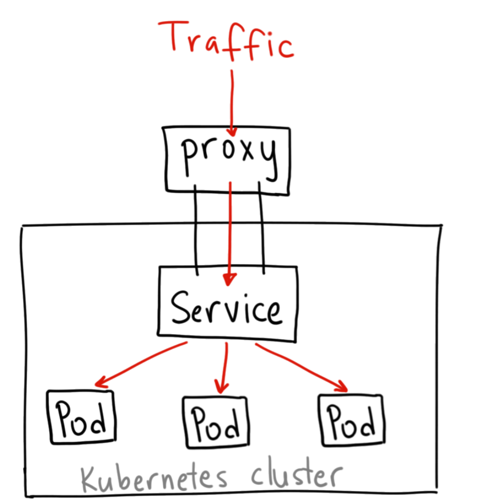 위 이미지에서 보는 것처럼, 서비스는 같은 역할과 서비스를 하는 여러 POD를 하나로 묶어서 관리하는 오브젝트라고 볼 수 있다. 파드가 새로 생성될 때마다 동적으로 IP를 할당할 수 있다. 간단히 말해서 서비스는 트래픽을 파드로 전달만하는 역할을 한다.