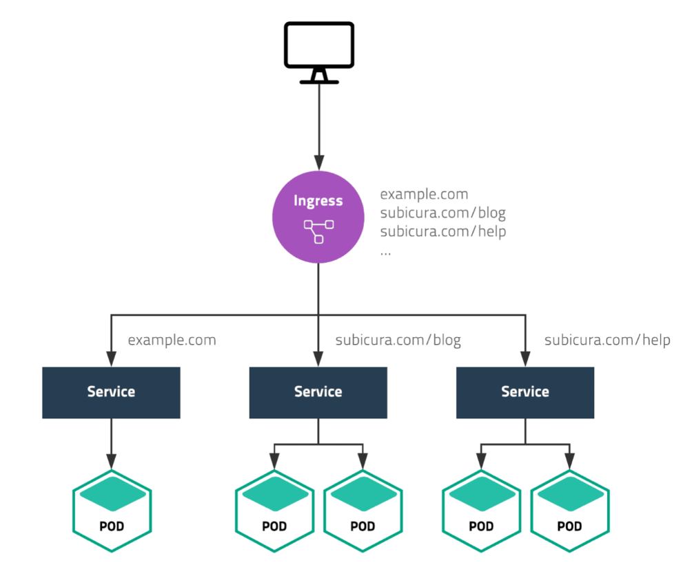 인그레스는 하나의 IP로 여러 서비스를 노출할 수 없는 로드밸런서 서비스의 한계를 해결한다. 서비스들을 묶는 서비스의 상위 객체라고 볼 수 있다.