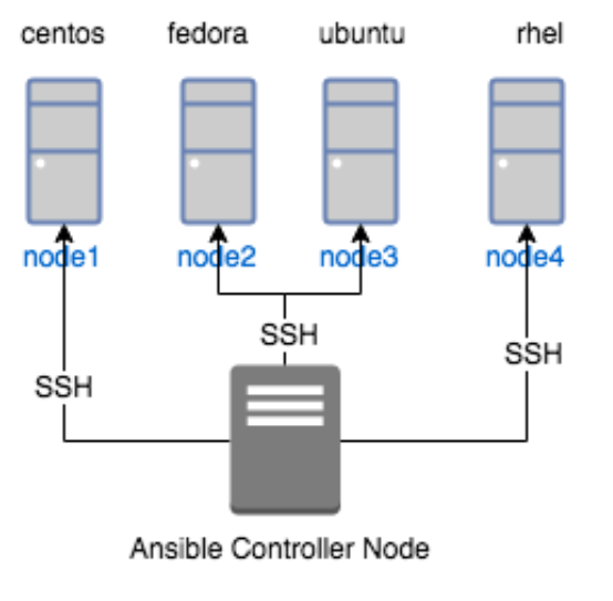 Control Node는 SSH 프로토콜을 통해서 다수의 Managed node를 관리한다.