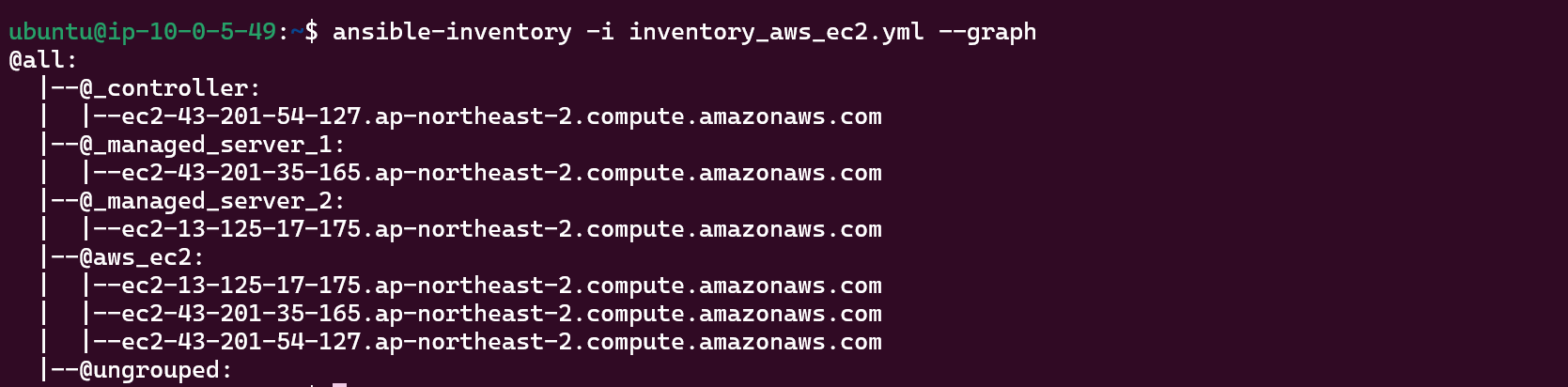 $ ansible-inventory -i inventory_aws_ec2.yml --graph