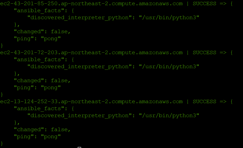 $ ansible all -m ping