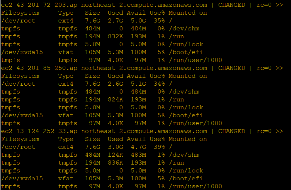 $ ansible all -m shell -a "df -Th"
