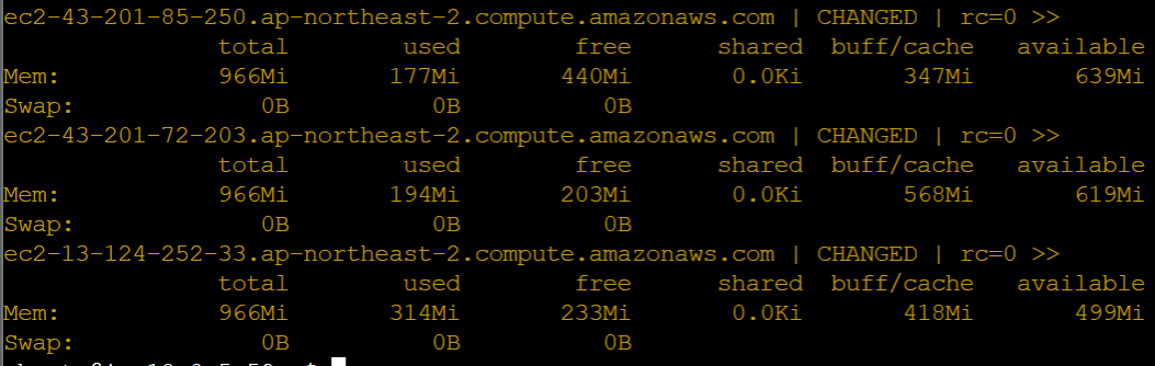 $ ansible all -m shell -a "free -h"