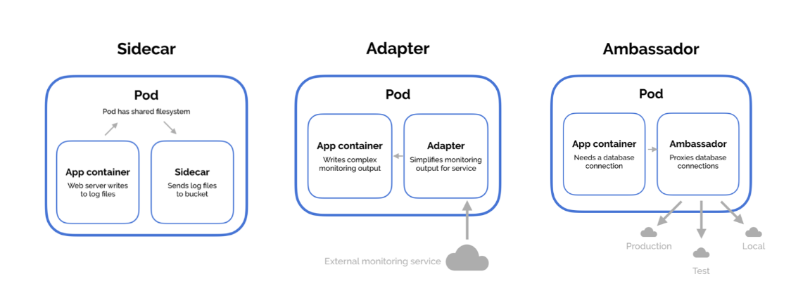 여기서 멀티컨테이너는 3가지 패턴이 있는데 아래와 같다.