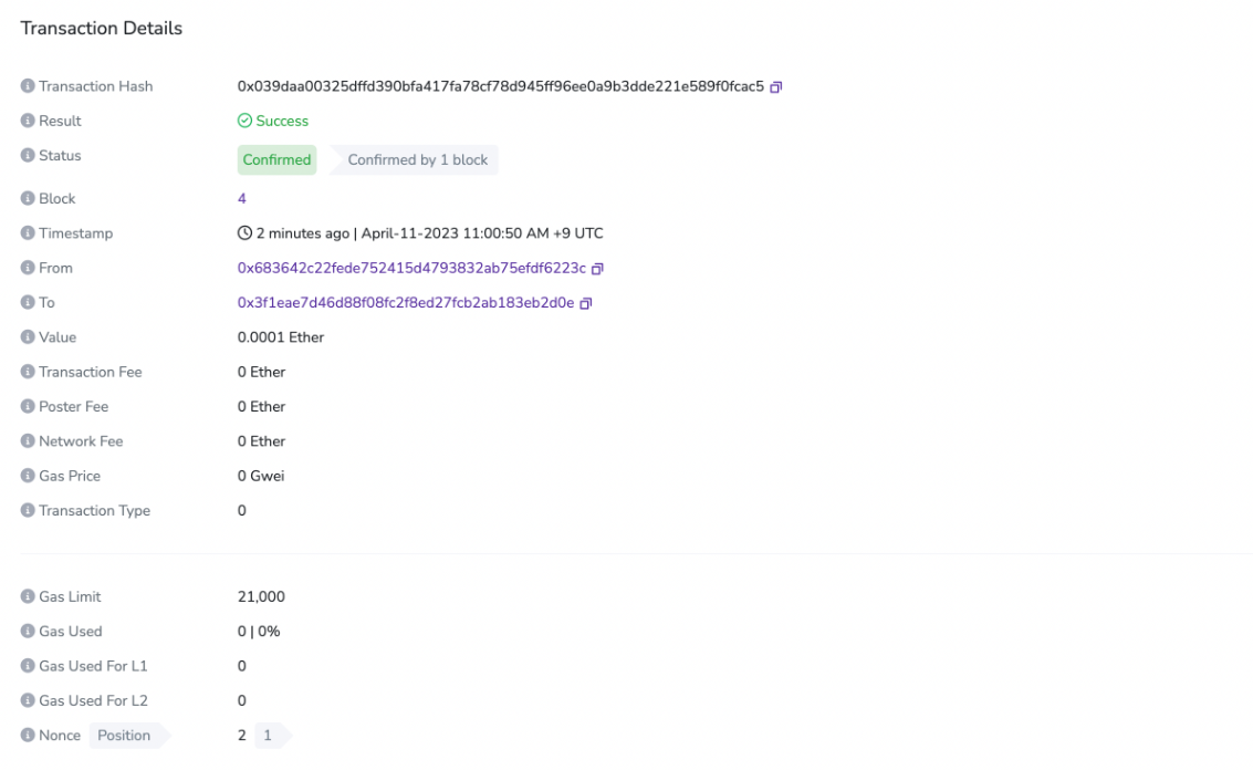 서비스 테스트를 위해서, 자체적으로 구축한 아비트럼 체인의 TxGas 수수료를 제로로 하는 테스트를 진행했다.