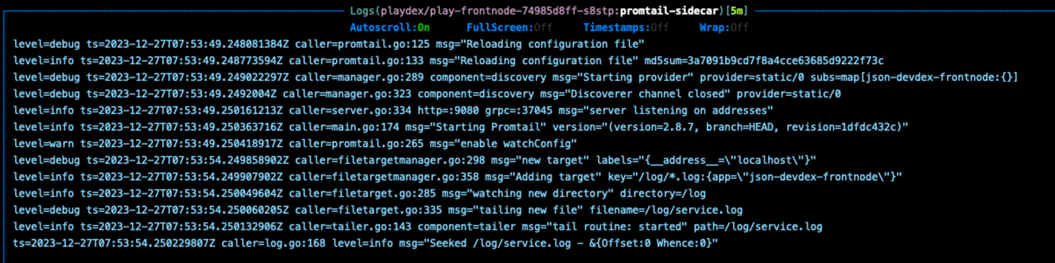 우리 팀에선 Loki-Prometheus-Grafana 스택으로 서비스 로그와 메트릭을 Grafana에 통합하여 모니터링하고 있다. 특히, Loki는 Container의 stdout, stderr 로그를 생성된 파드 기준으로 Promtail을 통해 수집하는데, debug 로그는 컨테이너 내부에서. log 파일 형태로 저장한다.